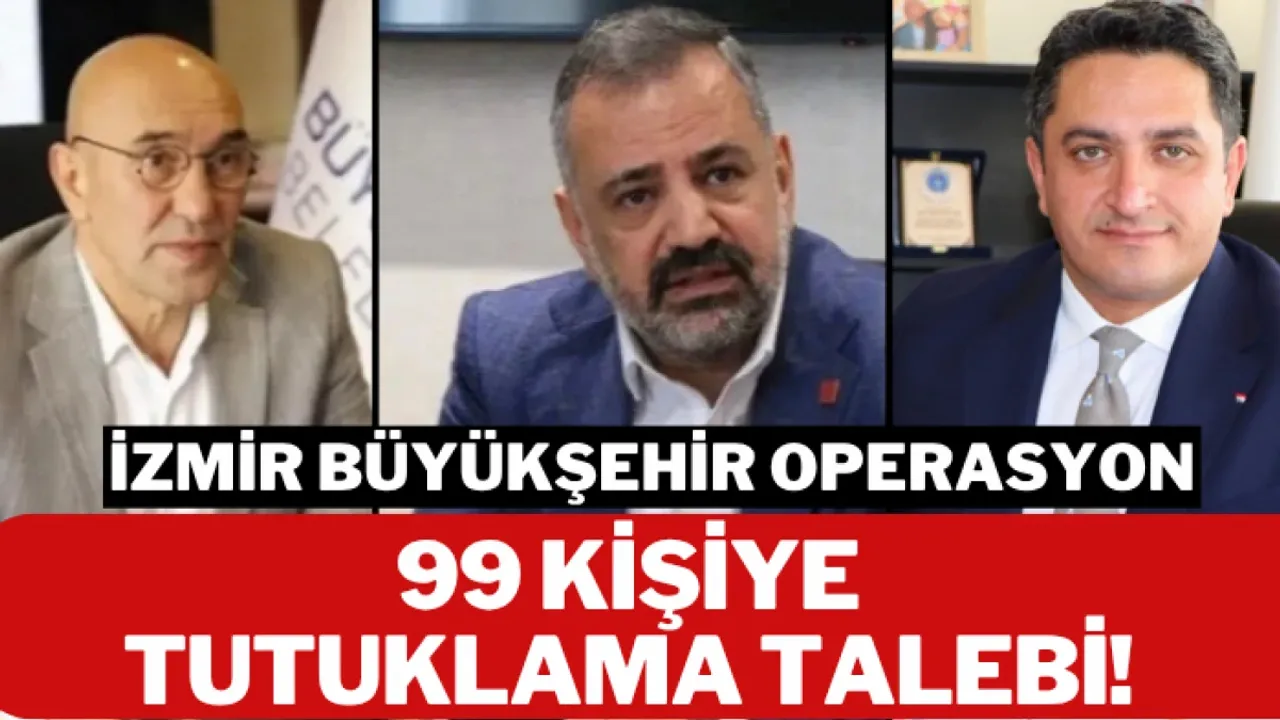 İzmir'deki 'yolsuzluk' operasyonu kapsamında adliyeye sevk edilen ve aralarında eski İzmir Büyükşehir Belediye Başkanı Tunç Soyer, CHP İzmir İl Başkanı Şenol Aslanoğlu ile İZBETON Genel Müdürü Heval Savaş Kaya’nın da bulunduğu 99 şüpheli, savcılık ifadelerinin ardından tutuklama talebiyle mahkemeye sevk edildi.