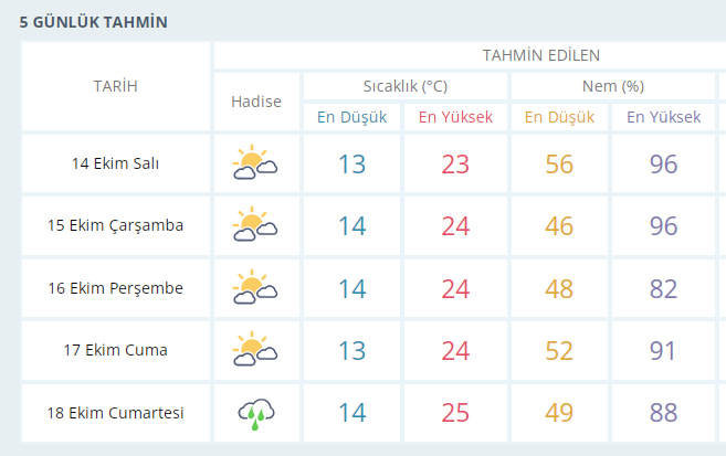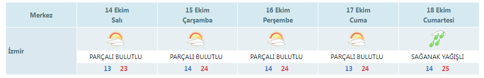 14 Ekim Salı günü; hava parçalı bulutlu, sıcaklık 24 derece