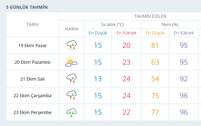 Gökgürültülü ve sağanak yağmurun etkili olacağı yeni haftada, en yüksek sıcaklık 24°C, en düşük sıcaklık ise gece saatlerinde 13°C olacak.