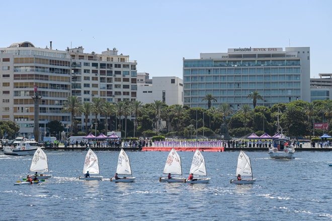 Etkinliklerin ardından protokol İzmir Büyükşehir Belediyesi tarafından restorasyonu tamamlanan Bergama Vapuru'na binerek İzmir Körfezi'ne açıldı. Bergama Vapuru'na İZDENİZ'e ait Vahap Özaltay ve Çaka Bey gemileri ile kıyı emniyeti ve deniz polisi tekneleri de siren çalarak eşlik etti. Cumhuriyet Meydanı kıyılarında çeşitli kurumlardan oluşan dalış ekipleri, Körfez'de 600 metrekarelik Türk Bayrağı açtı. Körfez sularında dalgalanan Türk bayrağını Bergama Vapuru'nun yanı sıra İZDENİZ gemileri, sahil güvenlik botları, yelkenler ve denizciler selamladı. Bergama Vapuru'ndan deniz şehitleri anısına denize çelenk atıldı.