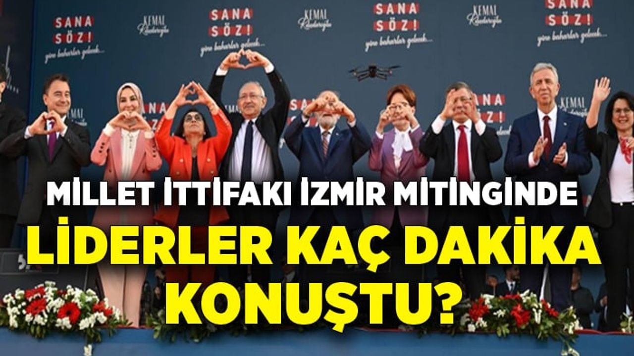 Kemal Kılıçdaroğlu'nun İzmir Mitinginde liderlerin konuşma süreleri: