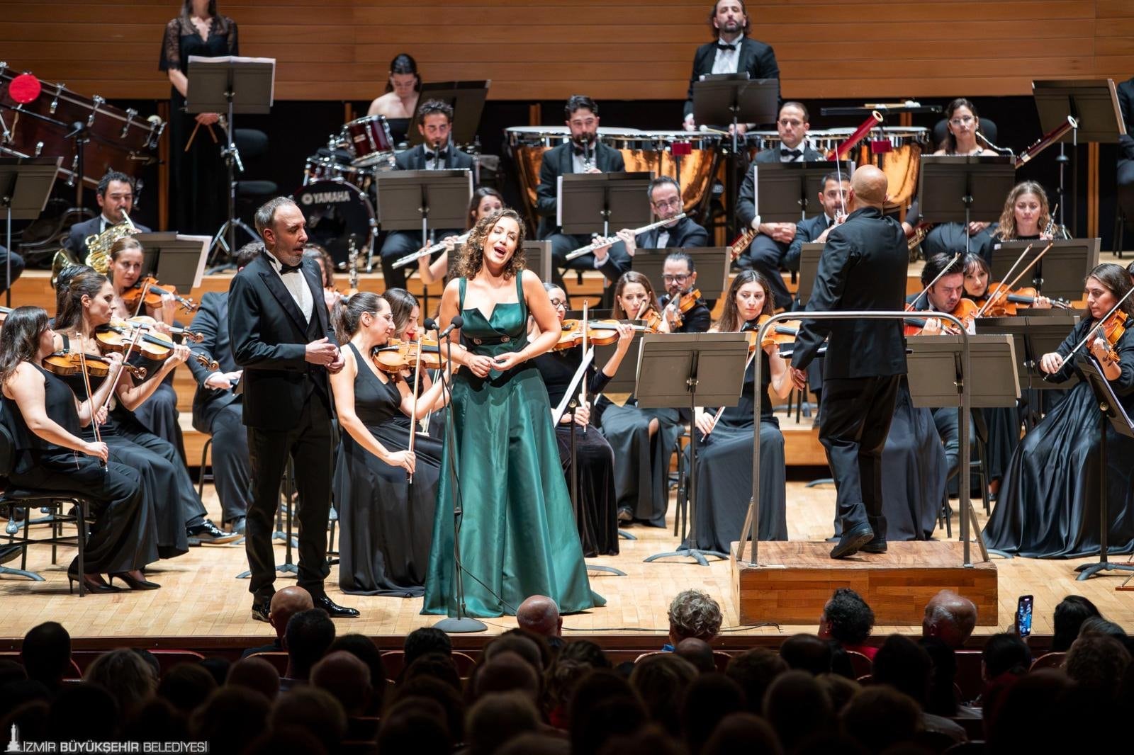 Cumhuriyet'in 102. yılı İzmir'de coşkuyla kutlanıyor. İzmir Oda Orkestrası da Ahmed Adnan Saygun Sanat Merkezi'nde Cumhuriyet Bayramı Konseri ile dinleyicilere unutulmaz bir gece yaşattı. Şef Orhun Orhon yönetiminde, soprano Görkem Ezgi Yıldırım ve bariton Arda Aktar’ın solistliğinde düzenlenen anlamlı konserde klasik batı müziğinin Türk öncü bestecilerinin eserleri ve seçkin aryalar yer aldı. Konser salonu Cumhuriyet sevdalıları İzmirli yurttaşlarla dolarken, İzmir Büyükşehir Belediye Başkanı Dr. Cemil Tugay da konseri eşi Öznur Tugay ile birlikte izledi.
