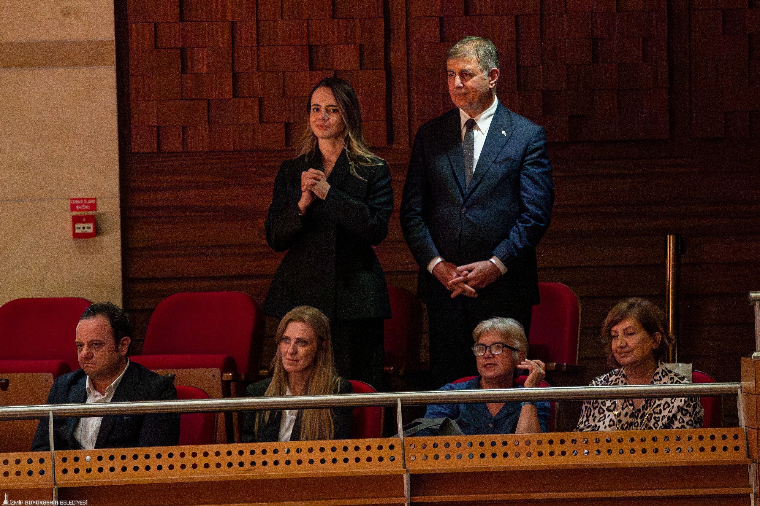 Dinleyicilere gurur dolu anlar yaşatan konser sonunda sanatçılara çiçek takdim eden Başkan Tugay, sahneye eşi Öznur Tugay ve konseri izleyen ünlü Türk orkestra şefi Gürer Aykal'ı da davet etti. Cumhuriyet duygusu ile salonda bulunduklarını ifade eden Başkan Tugay, "O kadar inanılmaz bir kıvanç duydum ve izlerken o kadar duygulandım ki bu gururu bize yaşattıkları için teşekkür ediyorum. İzmir halkı için daha fazlasını yapmak için İzmir Oda Orkestrası'nı kurduk. Her konserde beni bir kez daha gururlandırıyorlar" ifadelerini kullandı.