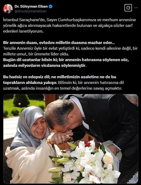 Bu hadsiz ve edepsiz dil; ne milletimizin asaletine ne de bu toprakların ahlakına yakışır. Bilinsin ki; bir annenin hatırasına dil uzatmak, aslında insanlığın en temel değerlerine savaş açmaktır.
