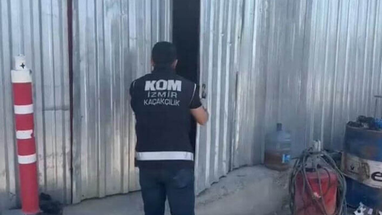İZMİR'in Bornova ilçesinde polisin bir depoya yaptığı baskında, araçların motor aksamı ile çevreye zarar veren 44,1 ton karışımlı akaryakıt ele geçirildi.