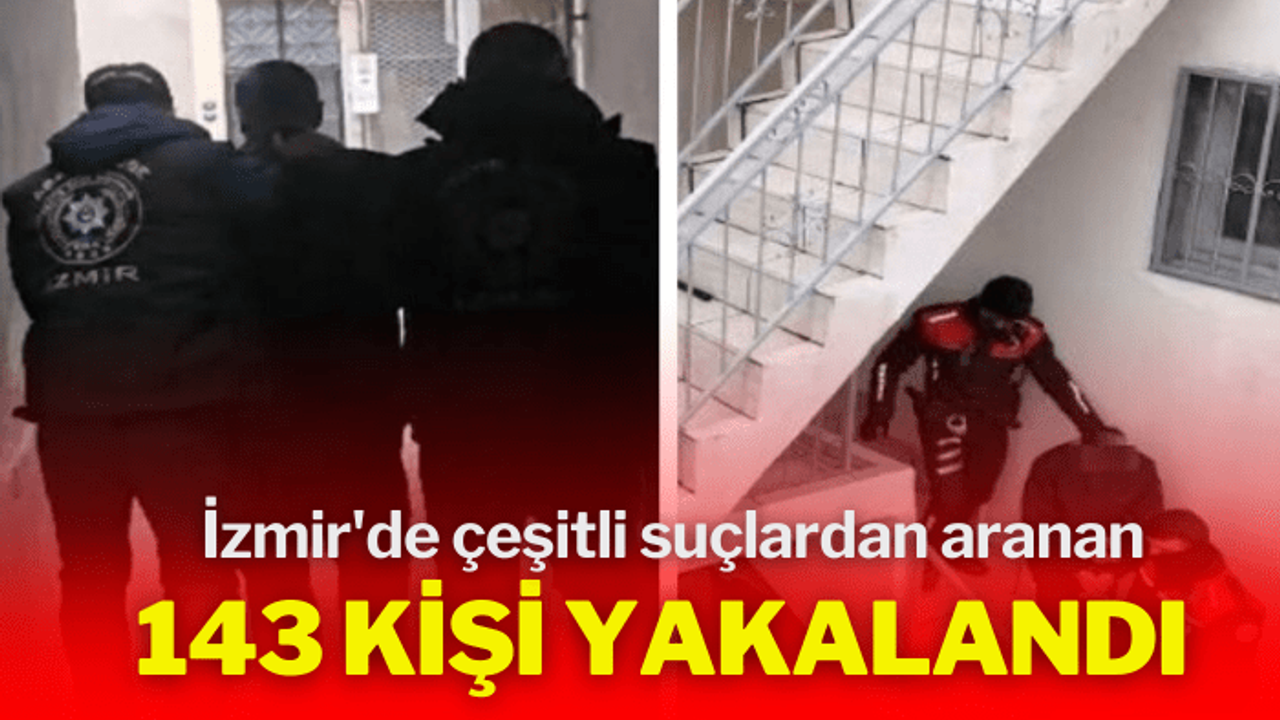 İZMİR'de çeşitli suçlardan aranan ve haklarında kesinleşmiş hapis cezası bulunan 143 kişi yakalandı.
