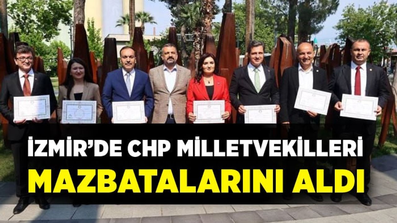 28. Dönem Milletvekili Genel Seçimleri’nde CHP’den İzmir milletvekili seçilen Yüksel Taşkın, Gökçe Gökçen, Ednan Arslan, Sevda Erdan Kılıç, Deniz Yücel, Rıfat Nalbantoğlu, Mahir Polat, M. Salih Uzun, Mustafa Bilici ve Seda Kaya Ösen bugün İl Seçim Kurulu'na giderek mazbatalarını aldı.