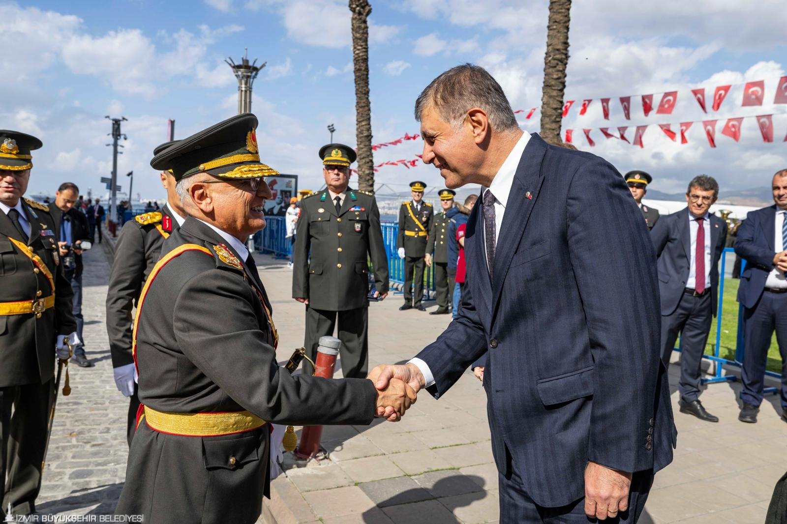 İzmir Büyükşehir Belediye Başkanı Dr. Cemil Tugay, 29 Ekim Cumhuriyet Bayramı kapsamında Cumhuriyet Meydanı’nda düzenlenen Atatürk Anıtı’na çelenk sunma programına katıldı. Törende İzmir Valisi Dr. Süleyman Elban, Ege Ordusu ve Garnizon Komutanı Orgeneral İrfan Özsert’in yanı sıra CHP İzmir Milletvekili Ednan Arslan, Ümit Özlale, Seda Kaya Ösen, MHP İzmir Milletvekili Tamer Osmanağaoğlu ile siyasi parti temsilcileri, ordu ve emniyet mensupları, oda, dernek ve sivil toplum kuruluşlarının temsilcileri yer aldı.
