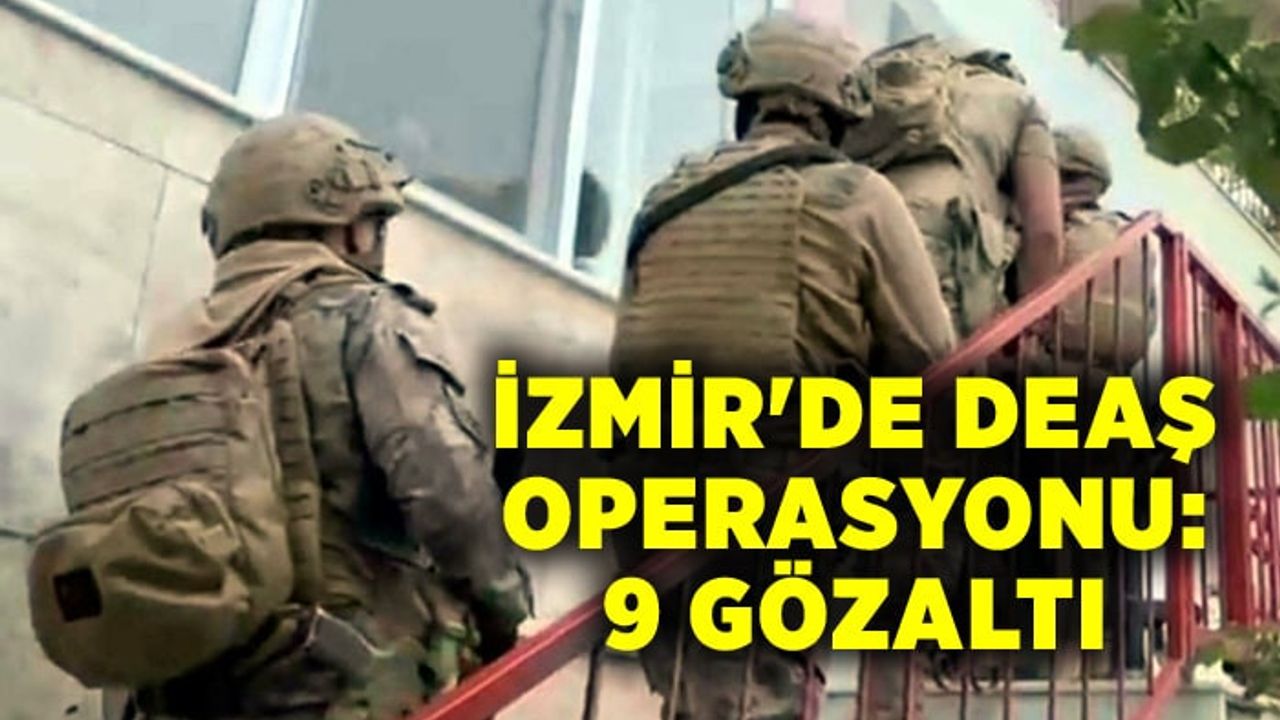 İzmir Cumhuriyet Başsavcılığı Terör Suçları Soruşturma Bürosu tarafından DEAŞ silahlı terör örgütüne yönelik yürütülen soruşturmalar kapsamında, çatışma bölgeleriyle irtibatlı olan, örgüt içinde faaliyet gösteren 5, haklarında genel güvenlik tahdit kodu bulunan 4 şüpheli için gözaltı kararı verildi. Teknik ve fiziki takibin ardından düzenlenen operasyonda 9 şüpheli gözaltına alınırken, adreslerdeki aramalarda dijital materyallere de el konuldu.