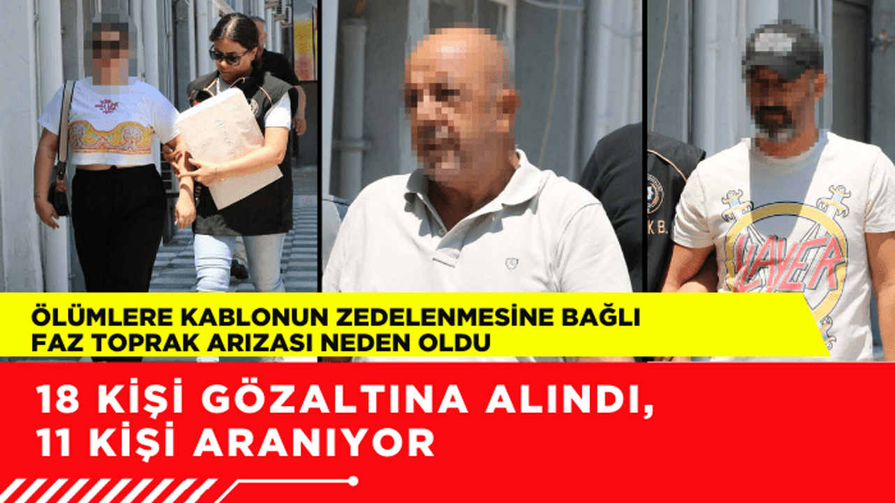 İzmir'de elektrik akımına kapılan 2 kişinin ölümüne ilişkin İzmir Cumhuriyet Başsavcılığı tarafından başlatılan soruşturma kapsamında; bilirkişi ön raporuna göre, olayda sorumlukları belirlenip, haklarında gözaltı kararı verilen 29 kişiden 18'i yakalanarak gözaltına alındı. Gözaltına alınanlar arasında İZSU Kanalizasyon Daire Başkanı B.K., İZSU'da görevli 1 şube müdürü, 3 kontrolör ile Gdz Elektrik Ege Bölge Müdürü ve Operasyon Yetkilisi A.S.ve işletme yöneticisi K.A.F’nin de bulunduğu belirtildi. Diğer 11 şüphelinin ise yakalanması için çalışmaların sürdüğü kaydedildi.