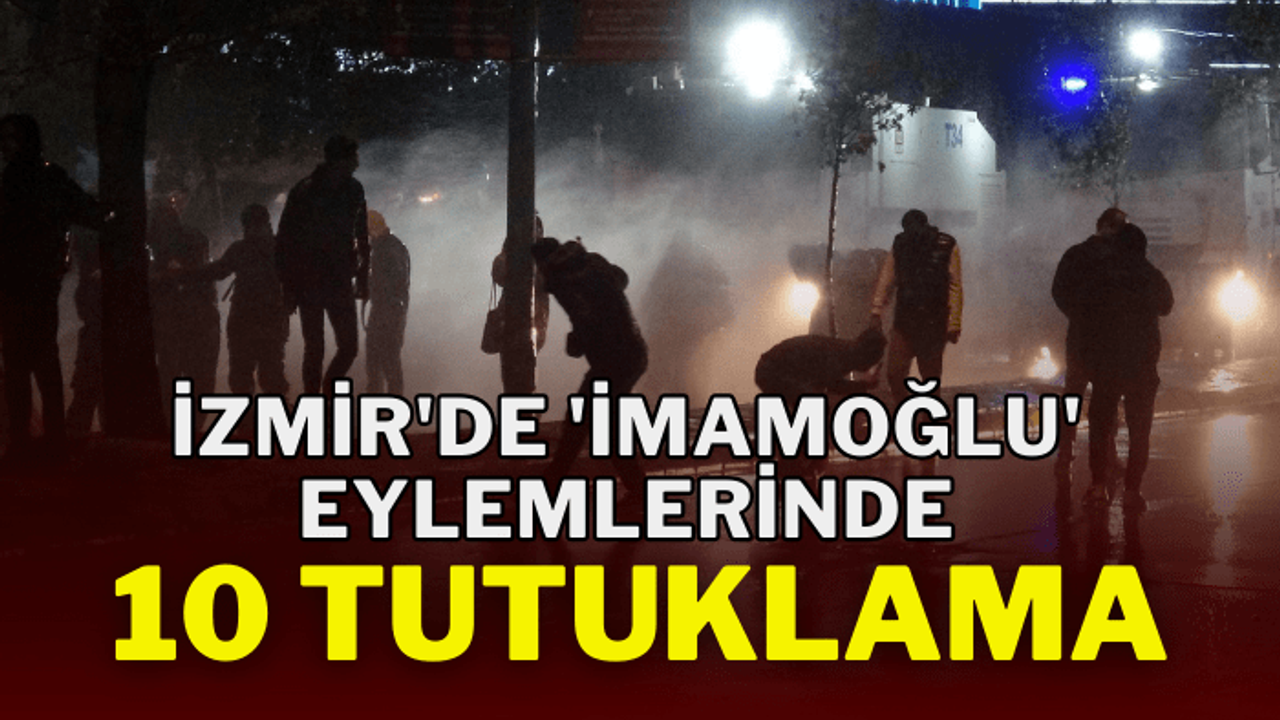 İZMİR'de İstanbul Büyükşehir Belediye (İBB) Başkanı Ekrem İmamoğlu'na destek için gösteri yapıp, kolluk kuvvetlerine taş, sopa ve molotofla mukavemet ettiği ileri sürülen 65 göstericiden 10'u tutuklandı.