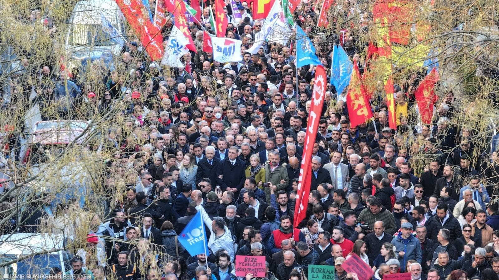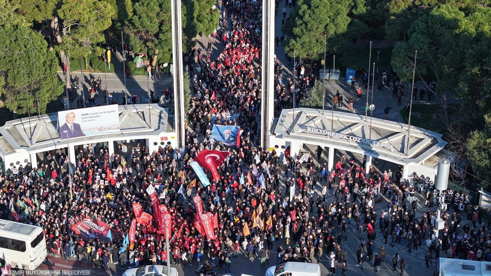 CHP İzmir İl Başkanlığı'nın çağrısı sonrası Lozan Meydanı'ndan başlayan yürüyüşe DİSK, TÜRK-İŞ ve KESK'e bağlı sendikalar, TMMOB İzmir, İzmir Tabip Odası, TİP, EMEP, TKP, Halkevleri, ESP, SMİ ve Sol Parti üyeleri de katıldı.