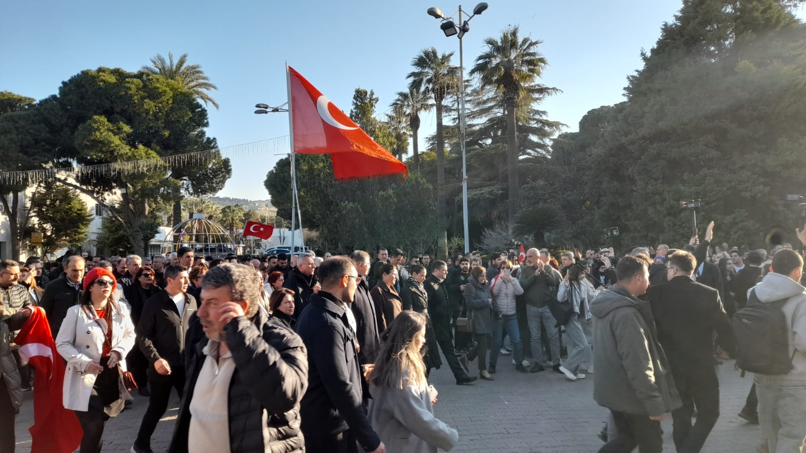Belediye Başkanları ve meclis üyelerinin de katılımıyla Lozan Meydanı'na gelen Başkan Tugay'ın Lozan Meydanı'na gelmesiyle yürüyüş başladı.