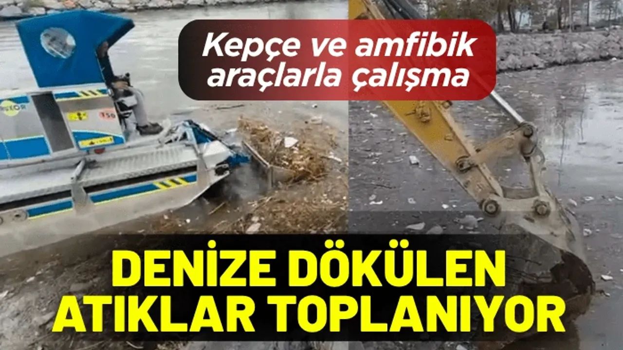 İzmir'de sağanakla birlikte Manda Çayı'ndan denize dökülen atıklar için temizlik çalışması başlatıldı. İzmir Büyükşehir Belediyesi ekipleri hem karadan kepçe ile hem de amfibik araçlarla atıkları toplamaya başladı.