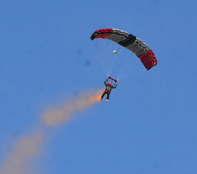 Havacılık, Uzay ve Teknoloji Festivali TEKNOFEST'in 2'nci günü Çiğli 2. Hava Ana Jet Üssü'nde sabah saatlerinde, Türk Hava Kurumu'nun paraşüt atlayış ekibinin uçuş gösterisiyle başladı. 7 paraşüt eğitmeni, 3 bin 500 metreden atlayış gerçekleştirdi. 4 paraşüt eğitmeni uçaktan birlikte atlayarak, el ele tutuşup yaklaşık bin 500 metre serbest düşüşle 'bomba gülü' adı verilen şekli oluşturdu. Paraşüt atlayışı gerçekleştikten sonra gökyüzünde uçuş ekibinin görsel şöleni izleyenlere keyifli anlar yaşattı. Ekip, 2 bin metrede birbirinden ayrılıp, yere bin metre kala paraşütlerini açtı. Ayrıca eğitmenler, Türkiye Cumhuriyeti'nin kurucusu Ulu Önder Mustafa Kemal Atatürk'ün posterini açtı ve seyircilerin alkışları eşliğinde Türk bayrağı ile iniş gerçekleştirdi.
