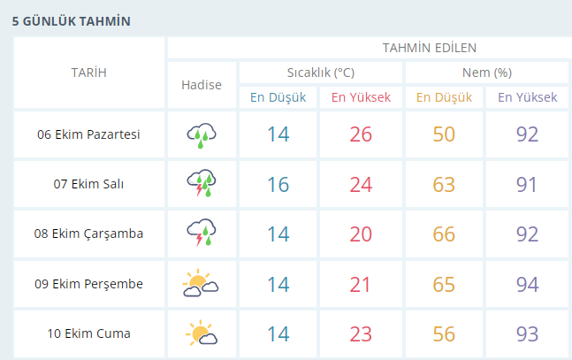 İŞTE İZMİR'İN HAVA DURUMU RAPORU;
