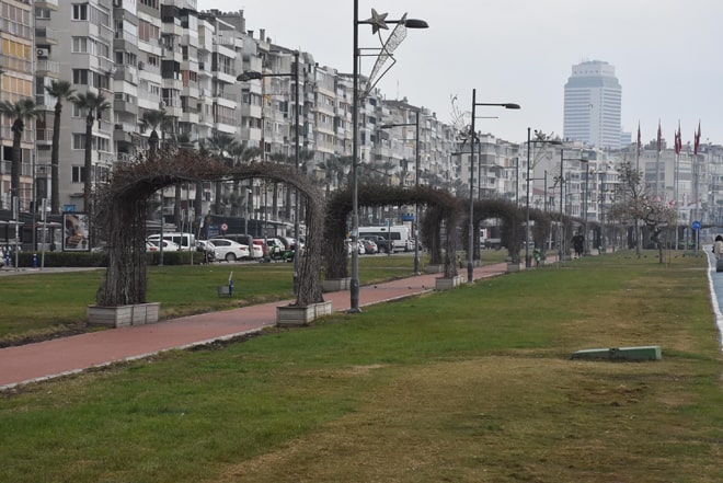 İzmir'de eğlence mekanlarının bulunduğu birinci Kordon'a sessizlik hakim olurken, Alsancak'ta birçok yerinin kapalı olduğu görüldü. Cadde ve sokaklar boş kalırken, bazı vatandaşlar sahile inip, vakit geçirdi.