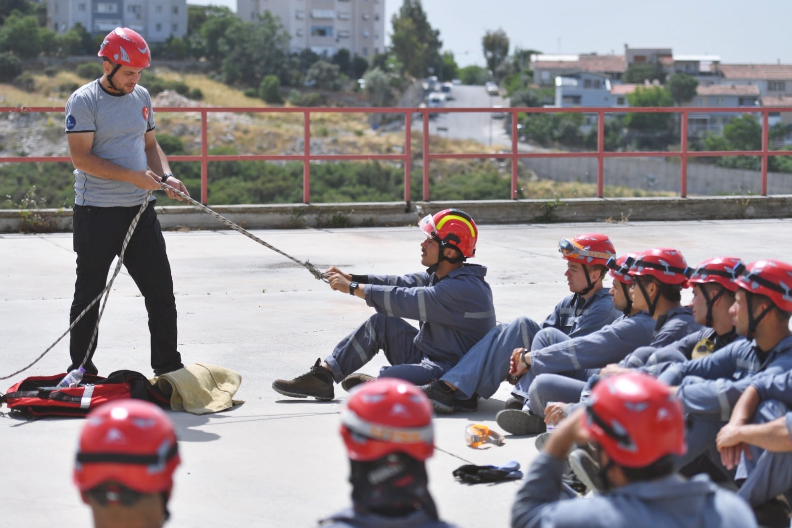 Arama Kurtarma Eğitmeni Mesut Topal, 15 metre yükseklikte, dağda iple iniş ve yukarı tırmanma eğitimi verdiği itfaiyecilerin heyecanına da ortak oluyor. Kolay bir iş yapmadıklarını söyleyen Mesut Topal, "İtfaiyecilik mesleğinin bir adım daha öteye gitmesi adına hepimiz çabalıyoruz. Çok zorluklarla dolu bir yol. Bu süreci başarıyla atlatacağımıza inanıyorum. Bu eğitimlere katılanların korkması, kaygılanması doğal. İlk aşamada ürkütücü, korkutucu gelebiliyor. Eğer sevgi, aidiyet duygusu, itfaiyecilik mesleğine bağlılık, sadakat söz konusuysa, bütün engeller aşılır diye düşünüyorum. Meslektaşlarımızın aldıkları eğitimler sonucu korkularını yenerek çok daha zorlu eğitimleri başarıyla tamamladıklarını görüyoruz" dedi. Araç Üstü Ekipman Eğitmeni Hakan İnan 32 metrelik merdivenli araç ile verdiği eğitimlerin ardından, itfaiyecilerin el hassasiyeti kazandığını belirterek, "Gittikleri bir olayda, çok katlı bir binada elektrik tellerine takılmadan, balkona daha fazla yaklaşabilecekler. Böylece canlıya zarar vermeden alabilecekler" dedi.