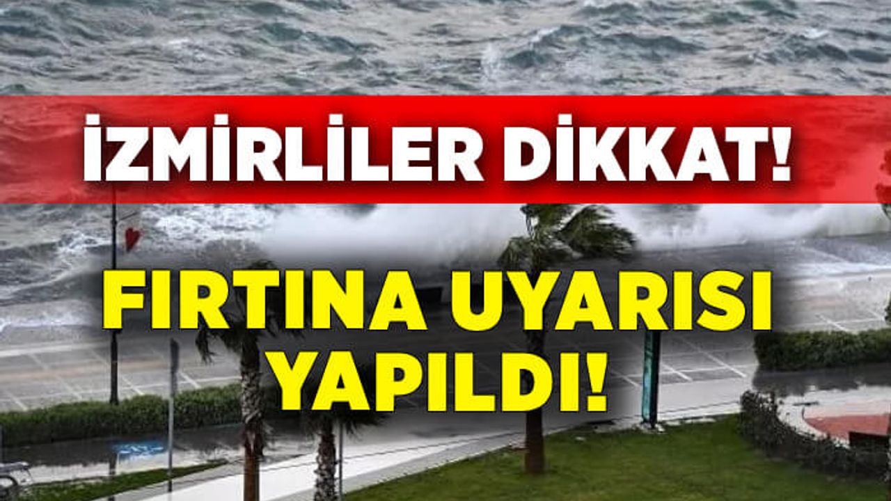 Meteoroloji 2'nci Bölge Müdürlüğü Tahmin ve Erken Uyarı Merkezi tarafından, İzmir için fırtına uyarısında bulunuldu. Açıklamada, "Rüzgarın yarın sabah saatlerinden İzmir'in kuzey ilçelerinde (Bergama ve Dikili), Kuzey-Kuzeydoğu yönlerden kuvvetli ve yer yer fırtına (50-80 km/sa) şeklinde eseceği tahmin edildiğinden, yaşanabilecek ulaşımda aksamalar, çatı uçması, ağaç ve direk devrilmesi gibi olumsuzluklara karşı dikkatli ve tedbirli olunması gerekmektedir" denildi.