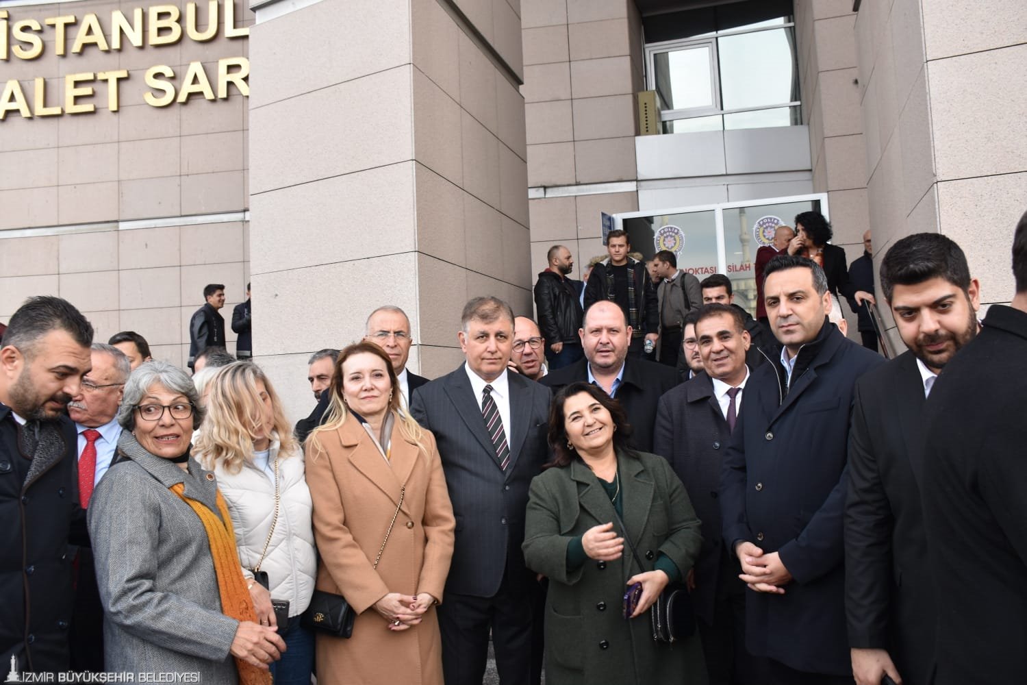 Adliye önünde konuşan İmamoğlu, “Bugünkü mesele, İstanbul’da ne yazık ki kurulmaya çalışılan bir kumpasın geldiği bir sonuçtur. Hedefin ne olduğu belli. İstanbul'da dört aydır, yargı tacizinin en üst seviyesini yaşıyoruz. Ama yılmadık, yılmayacağız. Haksızlığa, hukuksuzluğa karşı mücadele etmeye devam edeceğiz. Esenyurt'ta başlayan ve Ahmet Özer Hocamızın sabahın köründe derdest edilerek hapse atılması, Beşiktaş'ta Rıza Akpolat kardeşimizin haksız yere tutuklanarak, görevinden uzaklaştırılması süreciyle beraber, bu yargı eliyle süreci dizayn etme çabası devam etmektedir. Bir abi gibi, bir baba duygusuyla dedim ki, “Bak sayın Başsavcı; biz, öyle adil bir dönemi bu ülkeye kazandırmak istiyoruz ki, senin çocukların dahi, sadece onu değil, kim haksızlık, kim hukuksuzluk yapıyorsa, bu milletin hiçbir evladının sabahın köründe derdest edilerek evinden alınmayacağı günleri, herkese eşit bir adalet sistemini, yargının bağımsızlığını, bu ülkeye biz getireceğiz’ dedim. Biz, bunu söylüyoruz. Ailesini tehdit etmekle suçlayarak, bizi savcılığa ifadeye getiriyorlar. Biz, ‘Bu memlekette, bu 16 milyon şehirde bir çocuğumuzun bile eşit olmadığında, biz başımızı yastığa koyamayız’ diyerek yola çıkmış bir ahlakın temsilcileriyiz" ifadelerini kullandı.