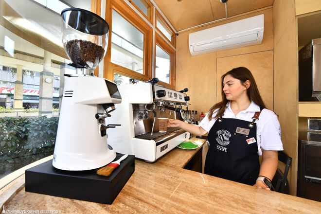 Merkezi noktalarda, üniversite yakınlarında kurulacak ve büfe konseptiyle hizmet verecek İzmirli Kahve’nin Konak metro çıkışındaki satış noktasının ardından Bornova'ya da bir büfe açılacak. İzmirli Kahve satış noktalarının, kent genelinde yaygınlaştırılması hedefleniyor.