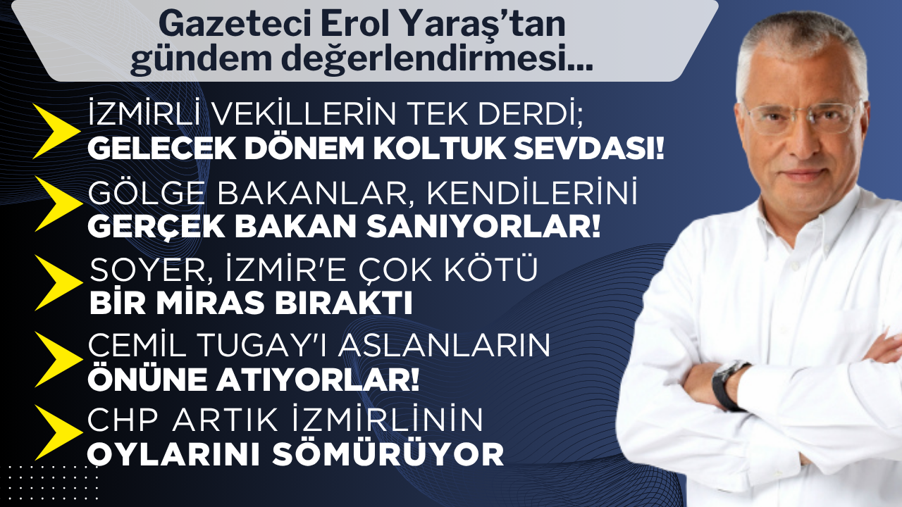 CHP İzmir’de gerçekleştirilen il kongresinin hemen ardından yeni il başkanı Çağatay Güç’e, CHP İzmir Vekilleri ‘sahada yoklar’ diye şikayet edildi. Gazeteci Erol Yaraş, "CHP'li başkanlar çok haklılar, bir iki milletvekili hariç, İzmir'e sahip çıkan yok. Cemil Tugay'ı arenada ortaya atmışlar, gelen giden başkana saldırıyor.” dedi.