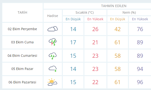 İzmir Meteoroloji Bölge Müdürlüğü'nün verilerine göre; 3 Ekim Cuma ve 4 Ekim Cumartesi günü gök gürültülü sağanak bekleniyor.