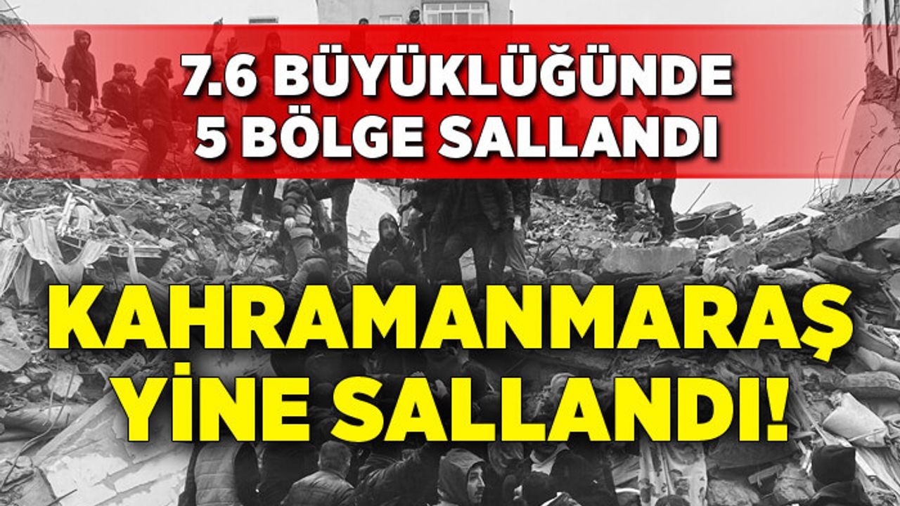 Türkiye'nin Doğu, Güneydoğu, Akdeniz, İç Anadolu ve Karadeniz bölgelerinde hissedilen, Kahramanmaraş'ın Pazarcık ilçesi merkezli 7.7 büyüklüğündeki depremin ardından artçı sarsıntıların sürdüğü bölgede bu kez de 7.6 büyüklüğünde ikinci bir büyük deprem oldu. Afet ve Acil Durum Yönetimi Başkanlığı (AFAD), saat 13.24’te olan depremin merkez üssünü Kahramanmaraş’ın Elbistan ilçesi, derinliğini ise 7.6 olarak açıkladı. Depremde yeni yıkımların olabileceği değerlendirilerek bölgede arama tarama çalışması başlatıldı.