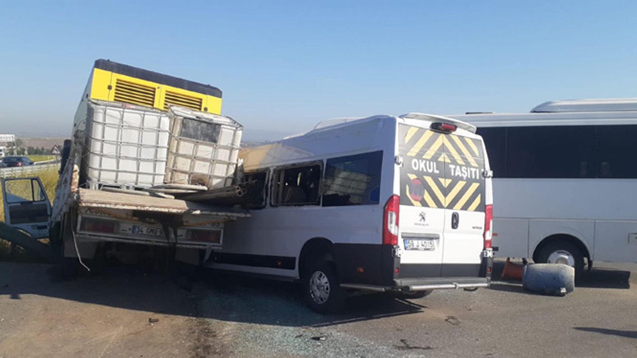 Kaza, sabah saatlerinde Saray ilçesinin Bağlar mevkisindeki ışıklı kavşakta meydana geldi. Uğur K.’nin kontrolünü yitirdiği 34 GMU 973 plakalı kamyonet, kırmızı ışıkta bekleyen Tamer Gök yönetimindeki 59 J 4015 plakalı minibüs ile Nazım Temizsu idaresindeki 59 S 4094 midibüse çarptı. Kazada kamyonet sürücüsü ile işçi servislerinde bulunan 17 kişi yaralandı. Durumlarının hafif olduğu belirtilen yaralılar, Saray ve Çerkezköy ilçesindeki hastanelere kaldırılarak tedavi altına alındı.