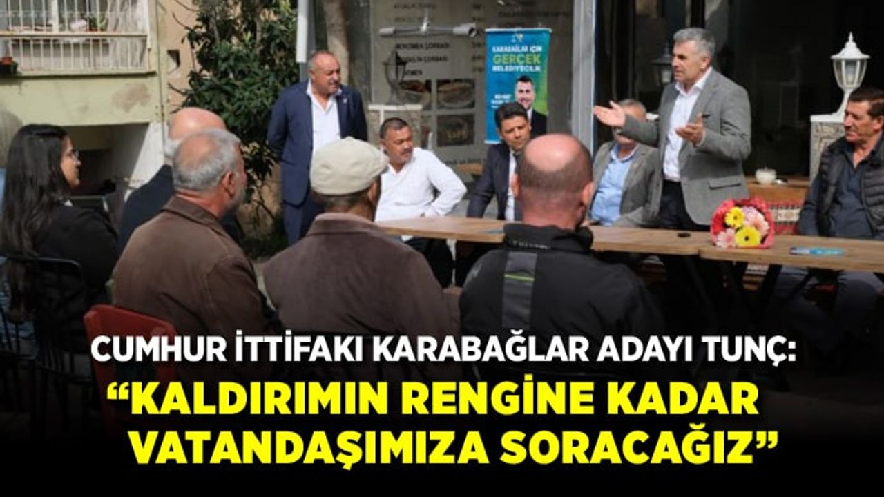 Katılımcı belediyecilik ile belediyeyi yöneteceklerini belirten AK Parti Karabağlar Belediye Başkan Adayı Mehmet Sadık Tunç, “Bir karar alınırken kim bu karardan etkileniyorsa onun fikrini alarak ilçemizi yöneteceğiz. Biz seçildik, biz bu kararı alacağız vatandaşta bu karara uyacak gibi bir fikrimiz yok. Kaldırımın rengine kadar vatandaşımıza soracağız. Temel bir yol haritamız var. Biz Karabağlar ’da hiçbir çiçeğin solmasına müsaade etmeyeceğiz. Hiçbir vatandaşımızın ötekileştirilmediği, ayrıştırılmadığı bir Karabağlar yaratacağız. Biz siyaseti seçim bitene kadar yapacağız, seçimden sonra rozet çıkar Karabağlar halkının ve Türkiye Cumhuriyet’inin bir belediye başkanı olarak görevimize devam ederiz. Vatandaşımızın içi rahat olsun ayrıştırma ve ötekileştirmeye müsaade etmeyeceğiz” ifadelerini kullandı.