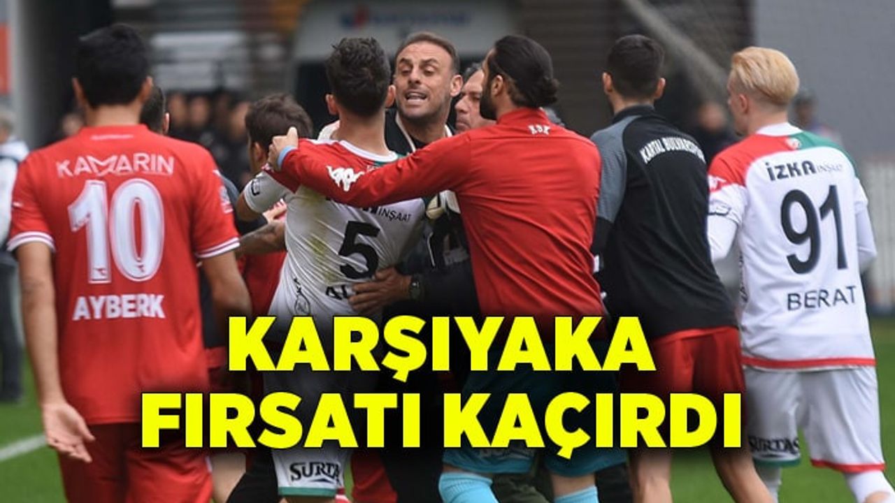 45’inci dakikada Karşıyaka gole yaklaştı. Cenk Ahmet’in kullandığı serbest vuruş yan direkten döndü.