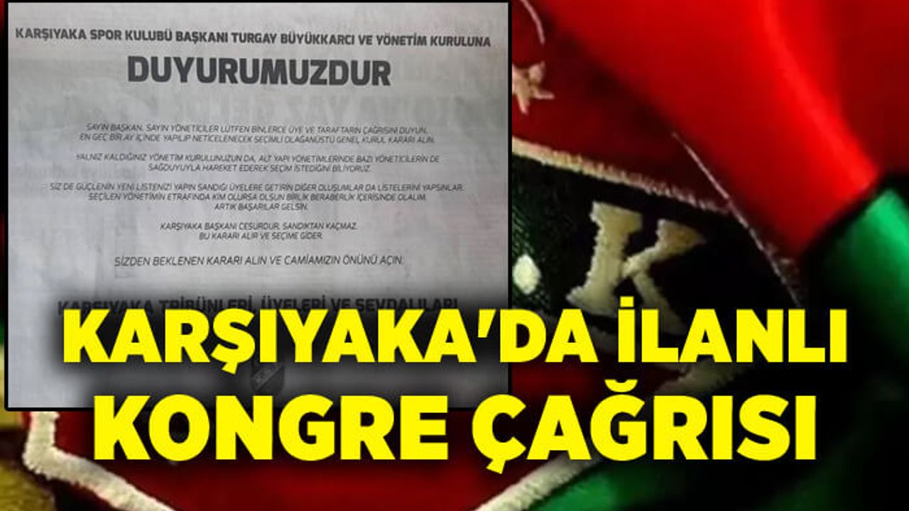 "Karşıyaka Spor Kulübü Başkanı Turgay Büyükkarcı ve yönetim kuruluna duyurumuzdur" diye başlayan ilanda, "Sayın başkan, sayın yöneticiler; lütfen binlerce üye ve taraftarın çağrısını duyun, en geç bir ay içinde yapılıp neticelenecek seçimli olağanüstü genel kurul kararı alın. Yalnız kaldığınız yönetim kurulunuzun da altyapı yönetimlerinde bazı yöneticilerin de sağduyuyla hareket ederek seçim istediğini biliyoruz. Siz de güçlenin, yeni listenizi yapın sandığı üyelere getirin, diğer oluşumlar da listelerini yapsınlar. Seçilen yönetimin etrafında kim olursa olsun birlik beraberlik içerisinde olalım. Artık başarılar gelsin. Karşıyaka başkanı cesurdur, sandıktan kaçmaz, bu kararı alır ve seçime gider. Sizden beklenen kararı alın ve camiamızın önünü açın" ifadeleri yer aldı.