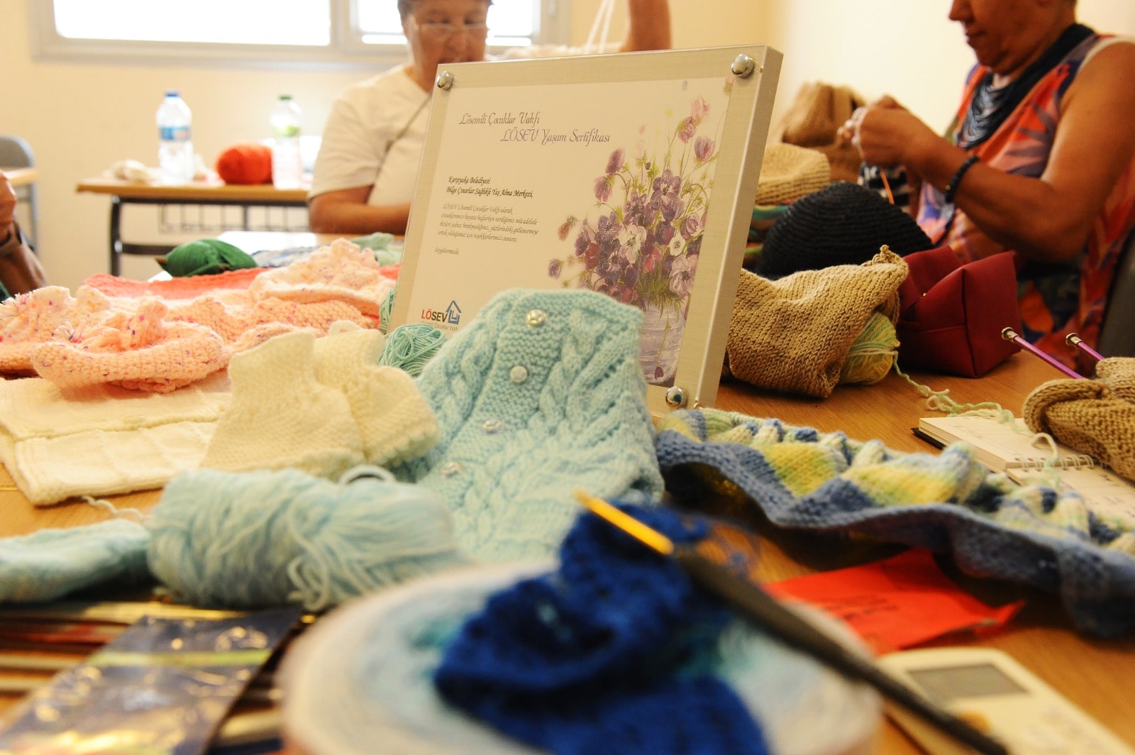 Karşıyaka'da yaşayan 65 yaş ve üzeri vatandaşlara hizmet veren Bilge Çınarlar Sağlıklı Yaş Alma Merkezi, örnek bir sosyal sorumluluk projesine imza attı. Merkezde açılan örgü kursuna katılan 35 kadın üye, el emeği göz nuruyla hazırladıkları çeşitli eşyaları Lösemili Çocuklar Vakfı (LÖSEV) iş birliğiyle iyiliğe dönüştürdü. Sezon başından bu yana lösemili çocuklar için 'umut battaniyesi' başta olmak üzere; ceket, pantolon, oyuncak bebek, patik, şapka, atkı ve bere gibi toplam 800 parça eşya örüldü.