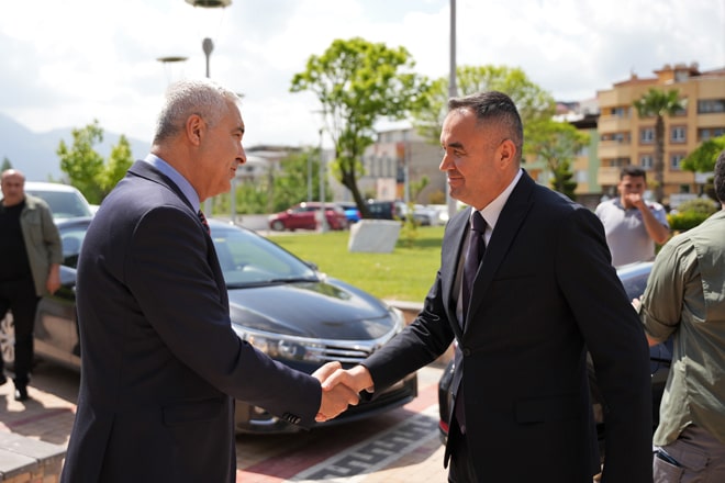 Kaymakam Sarı ve beraberindeki heyeti, belediye kapısında karşılayan Başkan Türkmen, ziyaretlerinden dolayı kendilerine teşekkür etti.