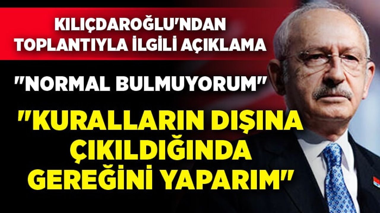 "Bu toplantıyı normal buluyor musunuz?" sorusuna "Hayır" yanıtını veren Kılıçdaroğlu "Ben normal bulmam da başkası normal bulabilir." dedi.