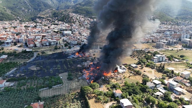 Yangın, saat 16.30 sıralarında Sekiz Eylül Mahallesi'nde bulunan bir palet ve seramik deposunda meydana geldi. Çıkış sebebi hünez belirlenemeyen yangına, çevredeki vatandaşların ihbarıyla itfaiye, polis ve sağlık ekipleri sevk edildi. Yangın, rüzgarın etkisiyle kısa sürede büyürken, yerleşim yerlerine yakın olması nedeniyle havadan helikopter ile de müdahalede bulunuldu.