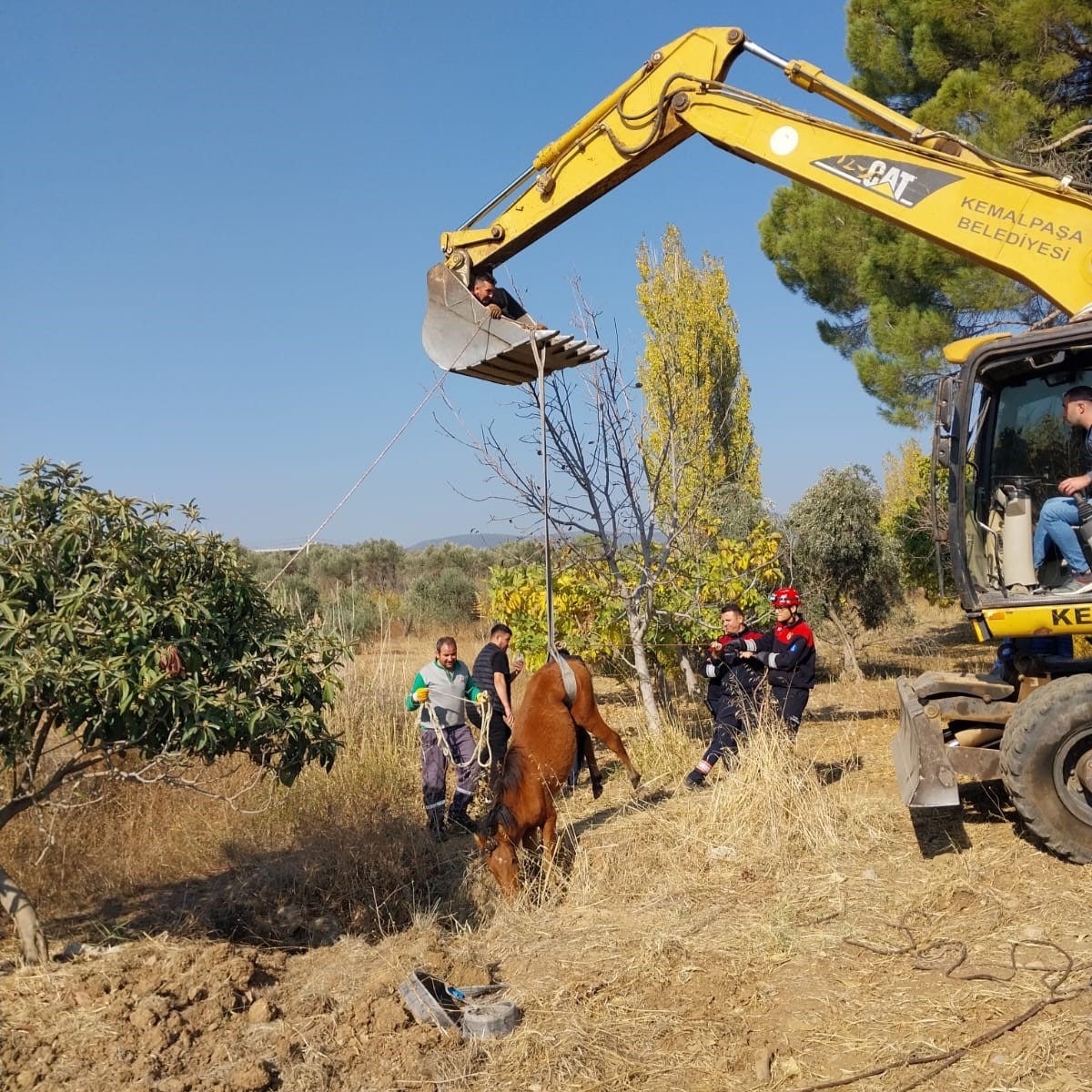 Dün saat 13.15 sıralarında bir arazi sahibinin ihbarı üzerine olay yerine giden İzmir Büyükşehir Belediyesi İtfaiye ekipleri ve Kemalpaşa Belediyesi Çevre Koruma Müdürlüğü ekipleri, titiz bir çalışmayla yaklaşık 4 metre derinliğindeki su kuyusuna düşen yılkı atını kurtardı. İş makinelerinin de desteğiyle başarılı bir şekilde gerçekleştirilen kurtarma operasyonu sonrası, herhangi bir sağlık sorunu gözlemlenmeyen yılkı atı doğal yaşam alanına geri bırakıldı. Operasyon sırasında etrafta bekleyen diğer yılkı atları ise dikkat çekti.