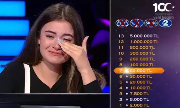 Yarışmacı, yarı- yarıya joker hakkını kullandı ve ardından yanıt verdi. Soruyu doğru bilen yarışmacı ağlamaya başladı.