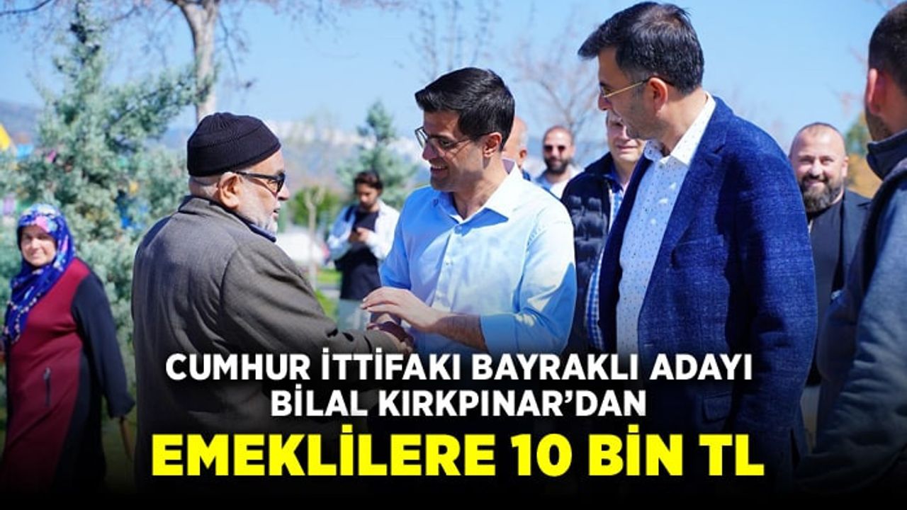 Cumhur ittifakı Bayraklı Belediye Başkan adayı Bilal Kırkpınar'dan emekli vatandaşlara müjdeli haber geldi. Kırkpınar, emeklilere belediye olarak destek vereceklerini belirterek, "Bu seçim bir emekli seçimi değil. Madem şehr-i emin olmaya talip olduk, emeklilerimiz için taşın altına elimizi koyacağız. Çorbada tuzumuz olsun istiyoruz. Tüm emeklilerimize 10 bin TL sosyal destek yardımı vereceğiz. Aralarında da bir ayrım yapmayacağız. Bayraklımızda ikamet eden tüm büyüklerimize destek olacağız." dedi.