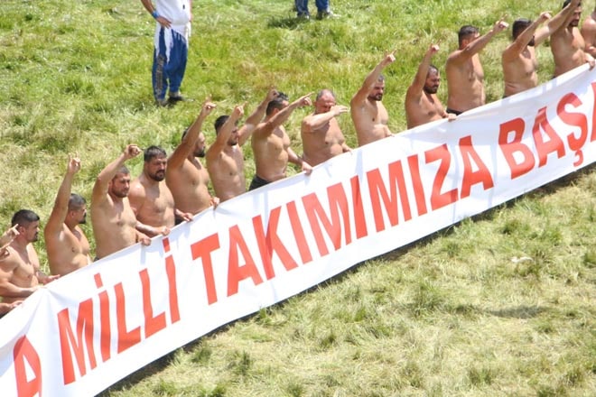 Kentte bu yıl 663'üncüsü düzenlenen Tarihi Kırkpınar Yağlı Güreşleri'nde başpehlivanlar, Almanya'da devam eden Avrupa Futbol Şampiyonası'nda, Avusturya maçında galibiyeti sevincini ‘Bozkurt’ işareti yaparak kutlayan milli futbolcu Merih Demiral'a UEFA tarafından 2 maç ceza verilmesine tepki gösterdi.