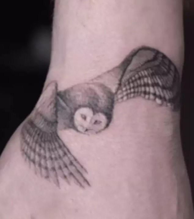 Birçok dövmesi olan Tatlıtuğ şimdi de eline bir baykuş dövmesi yaptırdı.