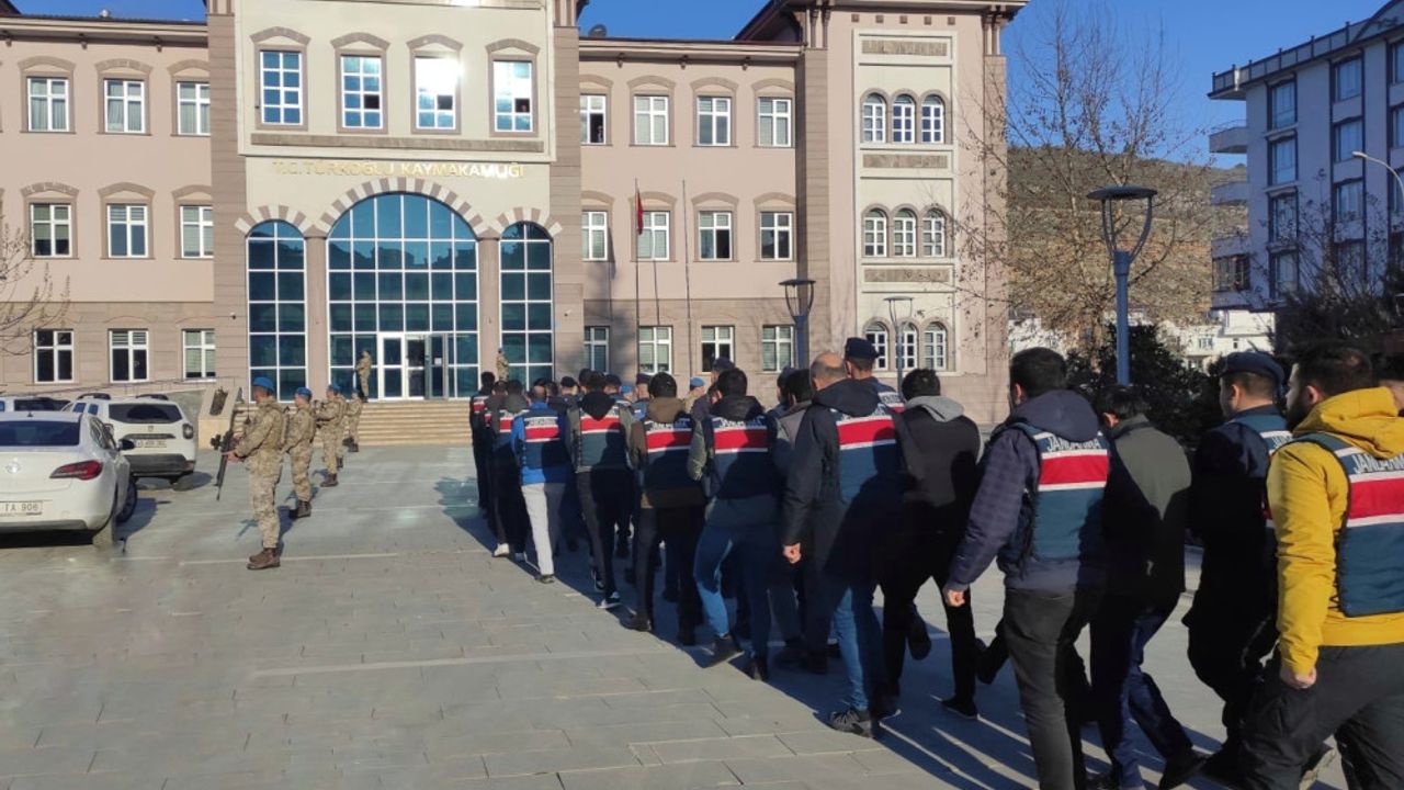 Adreslerde yapılan aramalarda ise 2 ruhsatsız tabanca, 11 cep telefonu, 120 gram uyuşturucu madde ile uyuşturucu kullanma aparatları ve hassas terazi ele geçirildi. Şüpheliler, jandarmadaki sorgularının ardından adliyeye sevk edildi. Şüphelilerden 19'u, çıkarıldığı hakimlikçe tutuklanırken, 2'si de adli kontrolle serbest bırakıldı. 3 şüpheli de savcılık sorgularının ardından serbest bırakıldı.