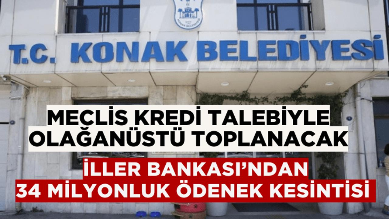 Konak Belediyesi, geçmiş dönemden kalan Sosyal Güvenlik Kurumu (SGK) ve vergi borçlarına karşılık İller Bankası'ndan yapılan 34 milyonluk ödenek kesintisi nedeniyle yaşanan mali sıkıntıyı aşmak için harekete geçti. Belediye çalışanlarının maaş ödemelerinde yaşanan aksaklıkları gidermek amacıyla Konak Belediye Meclisi, 20 Ocak Pazartesi günü saat 17.00'da olağanüstü bir toplantı gerçekleştirecek. Tek gündem maddesinin görüşüleceği oturumda Başkan Nilüfer Çınarlı Mutlu, meclisten kredi kullanma yetkisi isteyecek.