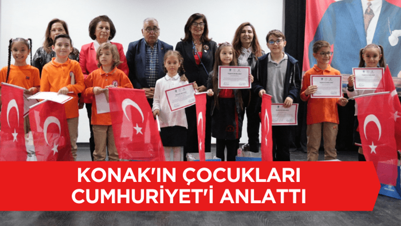 Konak Belediyesi'nin, İzmir Kadın Kuruluşları Birliği ve Alsancak Koruma ve Güzelleştirme Derneği ile birlikte 29 Ekim Cumhuriyet Bayramı'nın 101'nci yılı dolayısıyla 'Konaklı Çocuklarımız Cumhuriyet'i Anlatıyor' temalı kompozisyon yarışmasında ödüller sahiplerini buldu. Ulu Önder Mustafa Kemal Atatürk'ün inşa ettiği Cumhuriyet değerlerini gelecek nesillere aktarmak ve hatıralarına sahip çıkmak amacıyla düzenlenen yarışmada dereceye giren öğrenciler ödüllerini Türkan Saylan Kültür Merkezi'nde gerçekleştirilen törenle aldı. Yoğun katılımla gerçekleştirilen ödül törenine Konak Belediye Başkan Yardımcısı Naime Beyazıt, İzmir Kadın Kuruluşları Birliği Başkanı Gülsen Özkan, Alsancak Koruma ve Güzelleştirme Derneği Başkanı Dilek Olcay, sivil toplum kuruluşlarının temsilcileri, ödül alan öğrenciler ve aileleri ile muhtarlar katıldı.