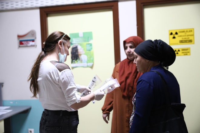 Vatandaşların sağlıklı yaş almasını önemseyen Konak Belediyesi, kadınlarda yaygın olarak görülen meme ve rahim ağzı kanserine karşı başlattığı tarama seferberliğini aralıksız sürdürüyor. "Erken teşhis hayat kurtarır" sloganından hareketle Kanser Erken Teşhis, Tarama ve Eğitim Merkezi (KETEM) ile yürütülen iş birliği kapsamında ilçe sınırları içerisinde ikamet eden kadınlar, ücretsiz servislerle mamografi ve smear testi taramasına götürülüyor. Kadınlar taramaya götürülmeden önce ise semt merkezlerinde gerçekleştirilen eğitim seminerleriyle bilgilendiriliyor. Erken teşhisin önemine dikkat çekmek amacıyla yapılan iş birliğinde son olarak Zeytinlik Semt Merkezi'nde eğitime katılan ve tarama yaptırmak isteyen 30 yaş üstü kadınlar, KETEM'e getirilerek mamografileri çekildi, ardından rahim ağzı kanseri için de smear testleri yapıldı. Taramaya katılan kadınlar, kendilerine sağlanan hizmetten dolayı Konak Belediyesi'ne teşekkür ederek tüm kadınlara hizmetten faydalanmalarını tavsiye etti.