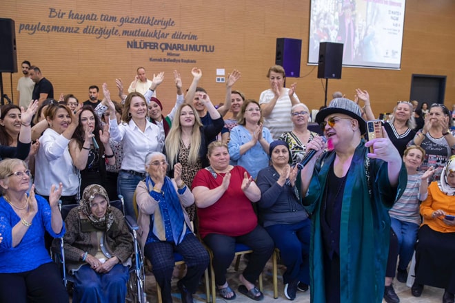 Toros Sosyal Tesisleri Düğün Salonu’nda ‘Mikrop Hikmet’ ile kadınlar matinesine; Konak Belediye Başkanı Nilüfer Çınarlı Mutlu’nun yanı sıra muhtarlar, semt merkezleri kursiyerleri ve semt sakini kadınlar katıldı. Coşku dolu alkışlarla karşılanan Başkan Mutlu, salonu dolduran annelerin Anneler Günü’nü kutlayarak, “Bir canlıya annelik yapmış olan herkesin Anneler Günü kutlu olsun. Anneler Günü’nüz güzel geçsin. Böyle eğlenceli bir anı kaçırmak istemedim, sizlerle birlikte olmak istedim. Mikrop Hikmet’e çok teşekkür ediyorum. Şimdi eğlenme zamanı” diyerek konuklarla birlikte eğlenceli şarkılar eşliğinde dans etti.Birbirinden hareketli, eğlenceli ve sevilen oyun havalarıyla salonu dolduran anneleri coşturan Mikrop Hikmet de, etkinliğe katılımından dolayı Başkan Mutlu’ya teşekkür etti.Sunulan ikramlar ve şarkılar eşliğinde bol bol eğlenen kadınlar, keyifli ve unutulmaz bir gün yaşadı.