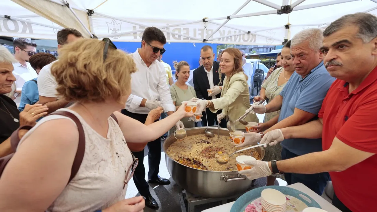 Konak Belediyesi’nin Muharrem ayı dolayısıyla düzenlediği geleneksel aşure ikramlarının ilki, Konak Belediye binası önünde gerçekleştirildi. Basmane’deki hizmet binası önünde kurulan aşure kazanından ilk ikramı Konak Belediye Başkanı Nilüfer Çınarlı Mutlu yaparken, CHP Konak İlçe Başkanı Ozan Ali İlgazi, belediye meclis üyeleri ve muhtarlar da kendisine eşlik etti. Vatandaşların yoğun ilgi gösterdiği ikramda Başkan Mutlu, temmuz ayı boyunca kentin farklı noktalarında aşure ikramı yapılacağını belirtti.