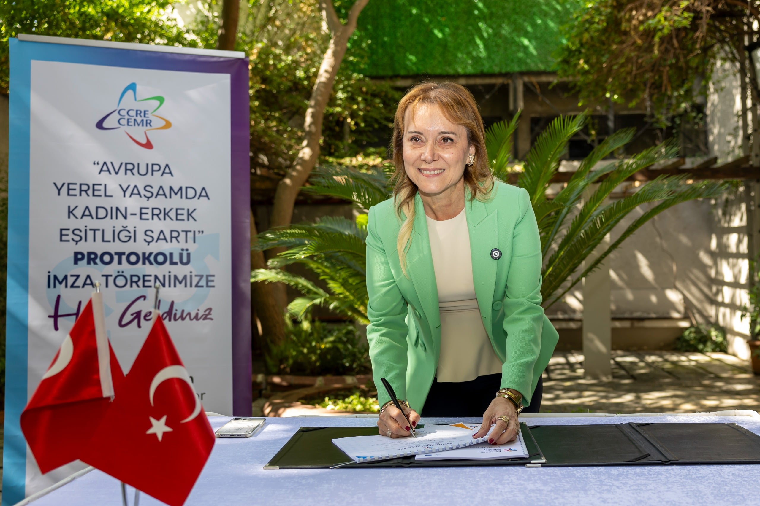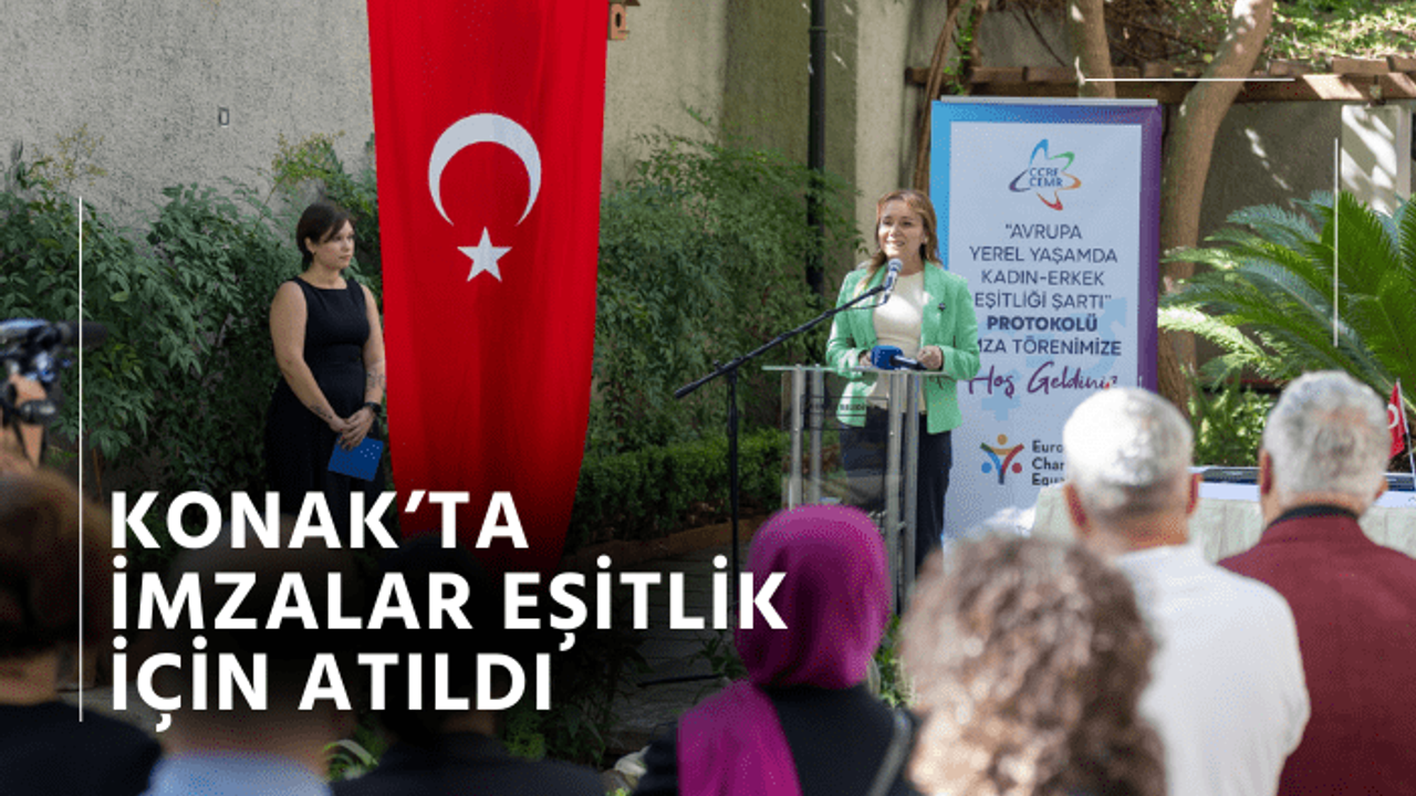 Toplumsal cinsiyet eşitliği konusunda önemli çalışmalar hayata geçiren Konak Belediyesi, “Eşit bir Konak” hedefi doğrultusunda önemli bir adım daha attı. Avrupa Belediyeler ve Bölgeler Konseyi tarafından hazırlanan Avrupa Yerel Yaşamda Kadın Erkek Eşitliği Şartı’na imza atmak üzere Konak Belediye Meclisi’nce yetkilendirilen Başkan Nilüfer Çınarlı Mutlu, çalışmayı hayata geçirecek imzayı attı. Bu imza ile Konak Belediyesi, yerel ölçekte yaptığı faaliyetlerde toplumsal cinsiyet eşitliğini sağlama taahhüdünde bulunan belediyeler arasına girdi. Basmane Semt Merkezi’nde yoğun katılımla gerçekleştirilen imza törenine, Başkan Nilüfer Çınarlı Mutlu’nun yanı sıra Konak Belediye Meclis Üyeleri, belediye bürokratları, belediye çalışanları, kadın hakları alanında çalışan derneklerin temsilcileri ve muhtarlar katıldı.