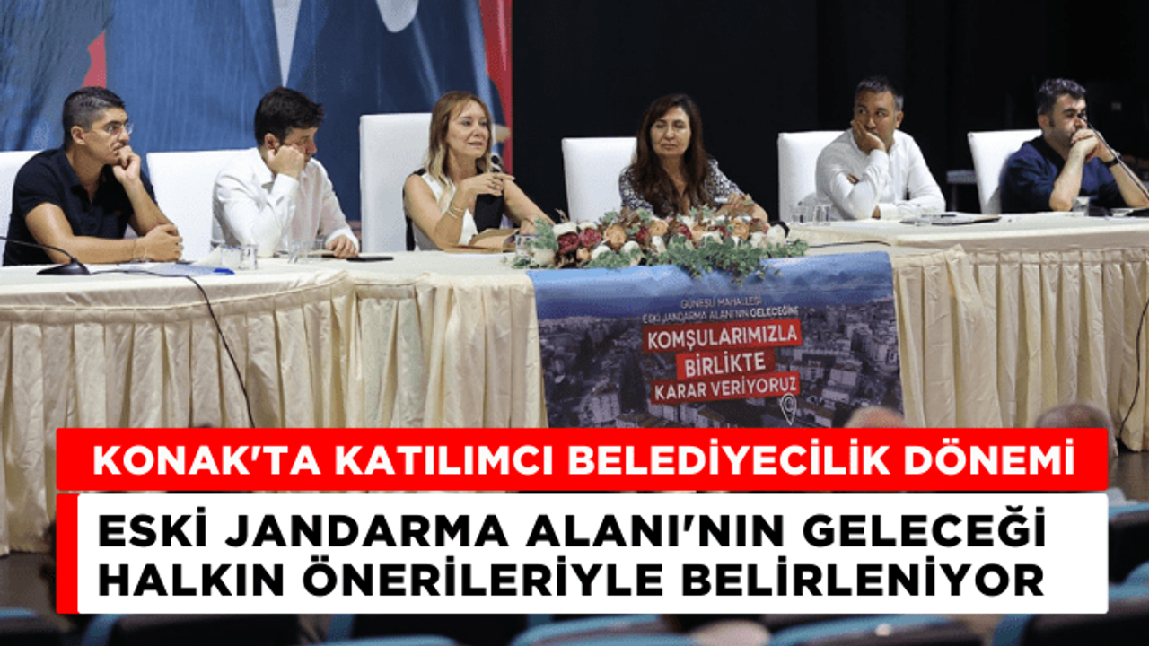 Eski Jandarma Alanı'nın ve alana komşu belediye hizmet alanlarının, yapı ve nüfus yoğunluğu yüksek olan bölge için kamusal alan anlamında oldukça kıymetli olduğunu dile getiren Konak Belediye Başkanı Nilüfer Çınarlı Mutlu, bu bölgenin geleceğini bölgede yaşayan komşularıyla tayin edeceklerinin altını çizdi. Planların yapılıp bittikten sonra değil, öncesinde halkla paylaşılmasının önemini vurgulayan Başkan Mutlu şöyle konuştu: "Uzun yıllar kentte katılımın nasıl olması gerektiği üzerine, kentte yönetişimin nasıl olması gerektiği üzerine çalışan bir ekibiz. Hep planlar yapıldıktan sonra, kentte bir şeyler olup bittikten sonra kentlinin haberdar olmasının ne kadar sakıncalı olduğunu ve bu sakıncaların doğurduğu hukuki süreçlerin her iki taraf için de ne kadar yıpratıcı olduğunu deneyimlemiş bir meslek grubundan ve odasından geliyorum. Jandarmadan alınan alan bizim için çok önemli. Gerçekten kentin merkezinde, kamusal bir kullanıma sunabileceğimiz nadir belediye mülkü alanlardan biri. Burayla ilgili bir plan var. Planın getirdiği fonksiyonlar da belli. Ama biz sizlerle bunu görüşmek, tartışmak istedik. İyi ki de öyle yaptık."