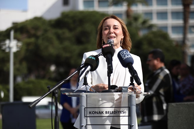 Programda kürsüye çıkan CHP Konak İlçe Başkanı Ozan Ali İlgazi ise şunları söyledi: “Hepiniz bu güzel güne hoş geldiniz. Bugün çok güzel bir gün için buraya toplandık. Gazi Mustafa Kemal Atatürk’ün kadınlara seçme ve seçilme hakkı vermesi doğrultusunda çok güzel bir sonuçla karşı karşıyayız. Türkiye’de ve İzmir’de çok güzel sonuçlara imza attık. Sizlerle ne kadar gurur duysak az. Kendinizi bu sonuç için bir kez daha alkışlamalısınız. Bu seçimi nasıl karalayabilirler diye uğraş içindeler. Vatandaşın özgür iradesine kilit vurmak istiyorlar. Van’da yaşananlar asla kabul edilemez. Yanlarında olduğumuzu haykırmak istiyorum. Asla hukuksuzluğa geçit verilmeyecek. İyi ki bu mücadeleyi iyi ki hep birlikte verdik.”